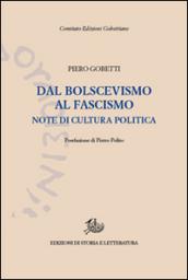 Uscito in rivista con un diverso titolo nel marzo 1923, "Dal bolscevismo al fascismo" rappresenta il tentativo di Gobetti di tracciare un bilancio critico della cultura politica italiana, in un percorso che culminerà un anno dopo con la pubblicazione della Rivoluzione Liberale. Nel ritrarre un Paese in trasformazione, Gobetti non ne nasconde le contraddizioni a livello economico, sociale e soprattutto politico. L'esperienza dei consigli di fabbrica e l'impegno dei comunisti torinesi vengono registrati come un episodio isolato e già lontano, mentre sempre più diventa pressante e urgente una lettura critica del fenomeno fascista, di fronte alla cui natura Gobetti deve chiedersi amaramente se non si avrà "a breve scadenza una lotta esasperata per le condizioni di libertà più elementari".