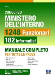 Il Manuale si presenta come ottimo strumento per la preparazione alle prove del Concorso indetto dal Ministero dell'Interno per 1248 Funzionari, suddivisi in vari profili. Il testo illustra in maniera chiara e completa tutti gli argomenti che saranno oggetto delle prove concorsuali per 182 Funzionari Informatici, in particolare: Diritto costituzionale, sistema delle fonti e delle istituzioni dell'Unione europea; Diritto amministrativo (con particolare riferimento al procedimento e provvedimento amministrativo, diritto di accesso, trasparenza e codice dei contratti); Reati contro la pubblica amministrazione;- Pubblico impiego, con particolare riferimento alle responsabilità; Doveri e diritti dei pubblici dipendenti, codice di comportamento e sanzioni; Legislazione speciale amministrativa riferite attività istituzionali e ordinamento del Ministero dell'interno; Capacità logico-deduttiva e di ragionamento critico-verbale; Test situazionali; Informatica; Metodologie e strumenti di project management. Nella sezione online collegata libro sono disponibili: Approfondimenti e aggiornamenti normativi; Videolezioni di logica; Simulatore di quiz; Quiz di inglese e informatica.